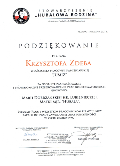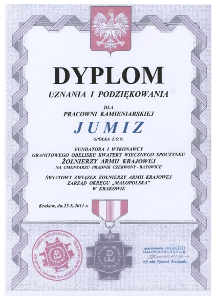 Firma Jumiz działa na rynku od wielu lat. Cechuje nas sumienność, staranność oraz ogromne doświadczenie w branży kamieniarskiej. W naszej ofercie znajdują się zarówno nagrobki i grobowce, jak i piwnice grobowcowe czy rzeźby wykonane z mosiądzu. Dla naszych klientów podczas konsultacji przygotowujemy trójwymiarowe wizualizacje nagrobków w systemie CAD.